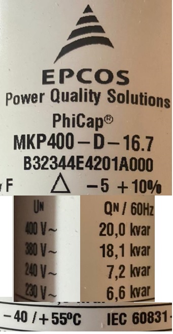 UNIDADE CAPACITIVA TRIF. 20KVAR 400V