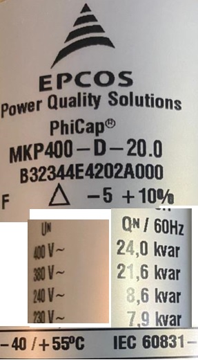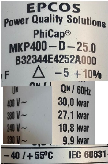 UNIDADE CAPACITIVA TRIF. 24KVAR 400V